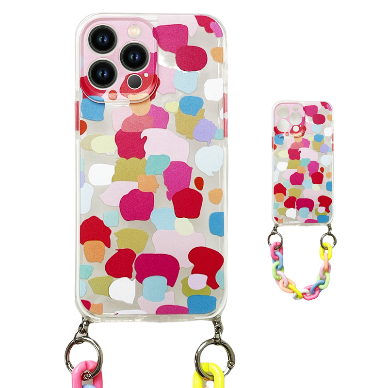 Η θήκη με αλυσίδα αποτελείται από διάφανη TPU θήκη και από μια κοκάλινη αλυσίδα ενσωματωμένη στην θήκη για να κρεμάτε με ευκολία το κινητό στο χέρι σας.