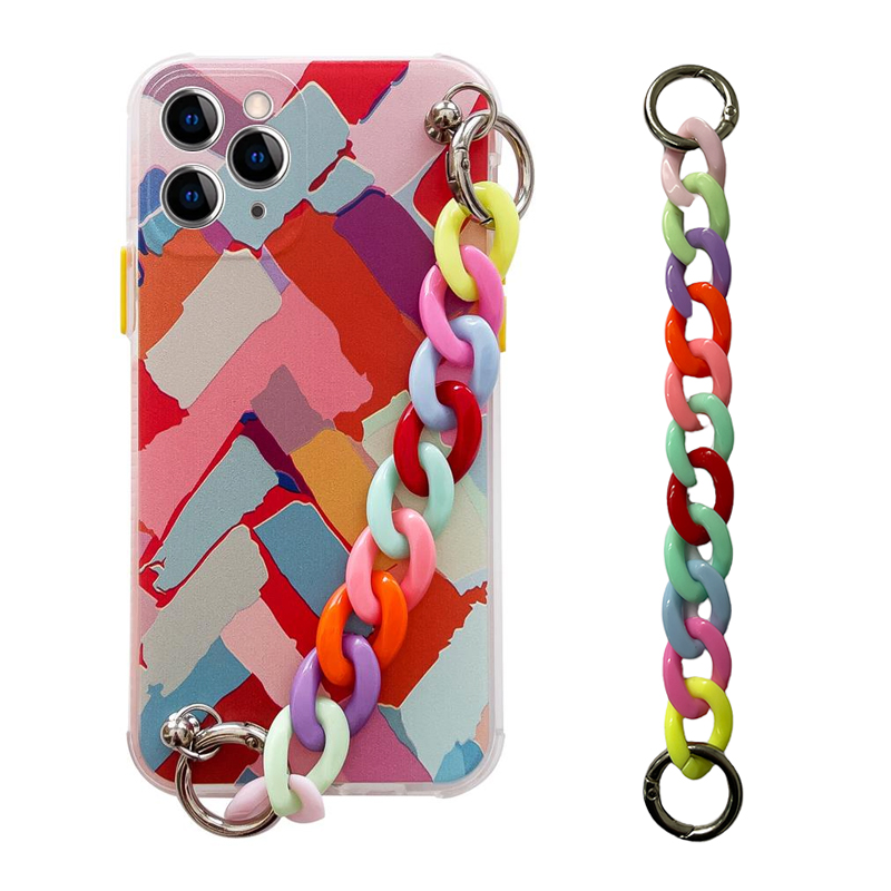 Η θήκη με αλυσίδα αποτελείται από διάφανη TPU θήκη και από μια κοκάλινη αλυσίδα ενσωματωμένη στην θήκη για να κρεμάτε με ευκολία το κινητό στο χέρι σας.