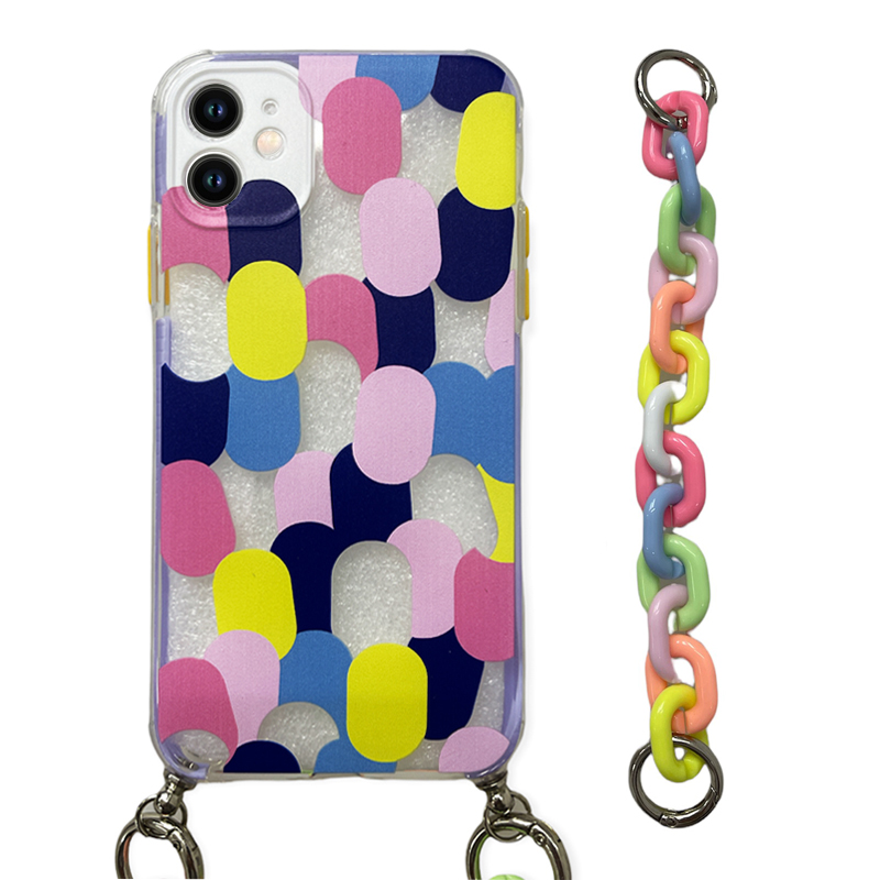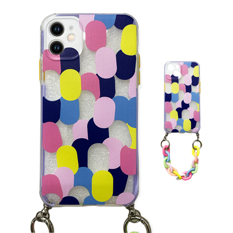 Η θήκη με αλυσίδα αποτελείται από διάφανη TPU θήκη και από μια κοκάλινη αλυσίδα ενσωματωμένη στην θήκη για να κρεμάτε με ευκολία το κινητό στο χέρι σας.